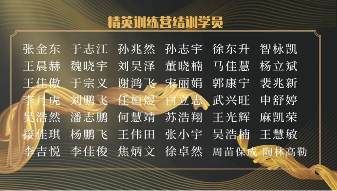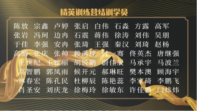 随着线上结训典礼的结束,本期精英训练营画上了圆满的句号。精英训练营不仅增强了学员们的团队凝聚力,也树立了相互配合,相互鼓励的团队意识,同时也认识到,实现中华民族伟大复兴中国梦需要一代又一代青年,凝聚力量,奋起搏击。