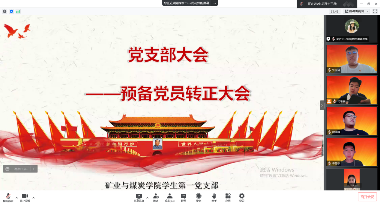 会议开始,郭灵飞同志说明本次会议内容为预备党员转正。首先,由程跃峰、刘佩奇等11位预备党员依次宣读《转正申请书》,向支部汇报自己在预备期间的工作情况及表现。其次,各自的培养联系人就这一年的考察进行发言;支部党员同志对预备党员综合表现进行简短发言。随后,支部正式党员进行投票表决。经支部大会决议,同意程跃峰、刘佩奇等11位预备党员如期转正为正式党员。最后,支部书记郭灵飞做总结发言,希望全体党员践行“四讲四有”,做合格党员。