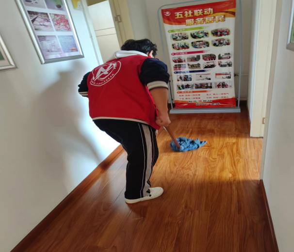 公司志愿者分组在社区居民活动室里进行清扫,大家热情高涨、干劲十足,拿着扫帚、抹布等工具,对棋牌室、舞蹈室、会议室、阳台等卫生死角进行全方位打扫。整个清扫过程细致、有序,不落下任何一个角落,不放过任何一片污渍。经过大家的清扫,社区居民活动室焕然一新,在场的每一位志愿者以自己的实际行动弘扬雷锋精神,感染着社区的每一位居民。